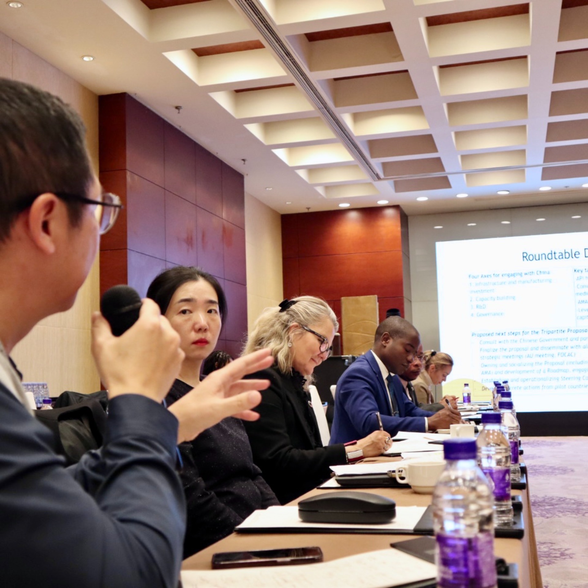 59 people participated in the high-level meeting. This included 29 African embassies including 8 Ambassadors such as The Ambassador of the Republic of Senegal and Co-Chair of FOCAC (H.E. Ibrahima Sory Sylla), The Ambassador of Uganda to China (H.E. Olive Wonekha), The Ambassador of the Republic of Cabo Verde to China (H.E. Arlindo do Rosario), and more; The African Union’s Representative to China (H.E. Rahamtalla M), Deputy Director General Department of African Affairs China’s Ministry of Foreign Affairs (Counsellor Mr. Xing Yuchun), President of China Chamber of Commerce Import and Export of Medicine (Mr. Zhou Hui), Special Envoy of African Medicines Agency (Mr. Michel Sidibe), the UN Resident Coordinator in China, (H.E. Siddharth Chatterjee), and UNICEF (Ms. Amakobe Sande) and UNAIDS Representatives (Mr. Bruce Lerner) in China.